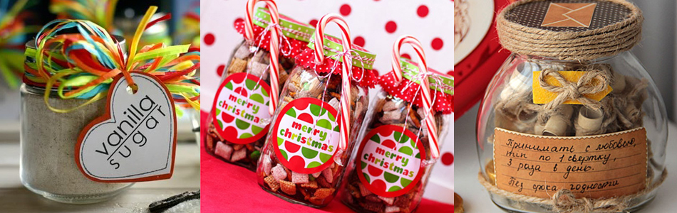 Заполнить баночку можно маленькими сладостями: конфетки, леденцы, мелкие печенья, разноцветный жевательный зефир, M&M’s, а также орехами, смесью гранола и сухофруктов, вкусным чаем или кофе, ореховой или шоколадной хенд-мейд пастой. А можно просто положить маленькие подарочки, например, блеск для губ, лаки вперемешку с леденцами в красивых обертках.