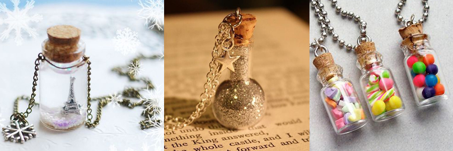 Очень красиво, оригинально и празднично будет выглядеть подвеска с маленькой бутылочкой и помещенной в нее елочкой. Для начала следует зайти в специализированный магазин аксессуаров, приобрести там подходящую по размеру и цвету цепочку. Она может быть самой простой, ведь в подарке не она станет главной изюминкой. В магазине для декораторов следует подобрать маленькую бутылочку с пробкой и крохотную елочку на подставке. Цвет елки необязательно должен быть зеленым, оригинально выглядит миниатюрное деревце золотистых или красных оттенков. Пробка на такой бутылочке уже может быть с колечком, если его нет, то крепление для цепочки следует сделать самостоятельно, ничего сложного в этом нет. По дороге домой следует зайти еще в супермаркет и приобрести мелкую, белую соль.